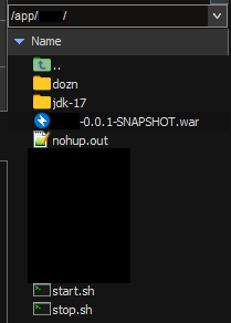 해당 서버 정상적으로 중지 되었는지 확인 ex) ps -ef | grep war